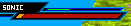 This was the first HUD for the Sonic Battle game, [short for Heads-up display]. Firstly, the bar was yellow, and the top green bar was just a little less thicker than the main one. The area with the name would go off to the left and attach itself to the side, getting rid of tht space between it. Most importantly, it didn't even work! The number below it would tell you how many hit points you had left out of 200. |